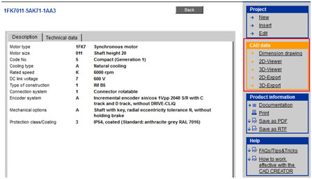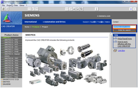 打开CAD CREATOR软件,可以直接在右边的红框中输入电机的订货号,点击"Order No.search"按钮,可直接搜寻到该电机的CAD图形数据。