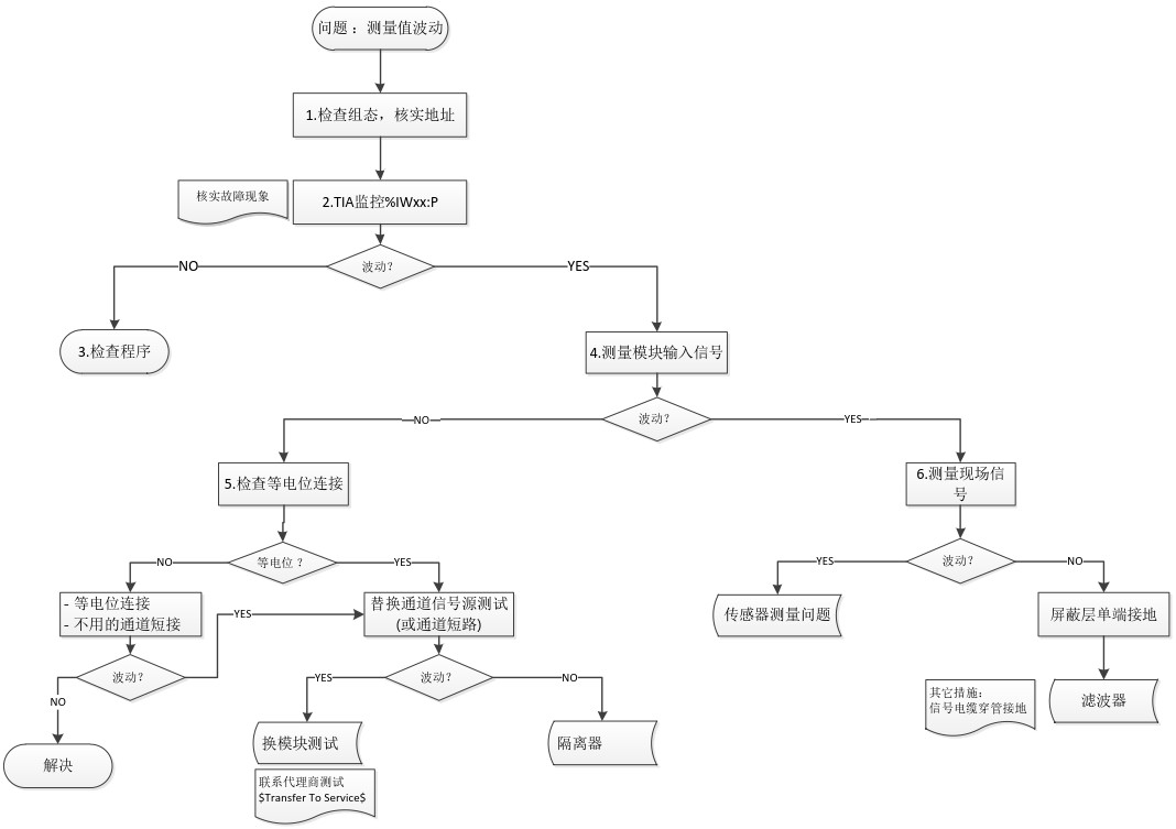 当 S7-1200 模拟量输入模块接收到测量值波动时,可通过如图 2 所示的步骤进行检查: