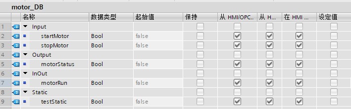 右键打开图 3 中 FB 块的背景数据块 “motor_DB”,显示内容如图 5 所示。