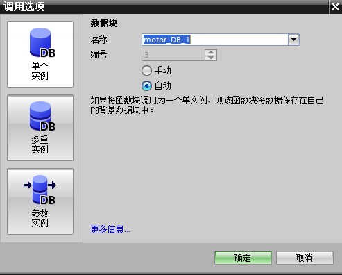 多重实例:选择多重实例后,无需为被调用的 FB 块创建单独的背景 DB 块,被调用的 FB 块的背景数据块存储在外层 FB 块的静态变量区域。