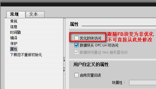 背景数据块的优化或非优化:由 FB 块属性的“优化的块访问” 设置决定