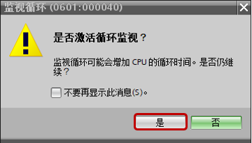 激活监视循环后,跳出窗口如图3所示,点击按钮“是”。