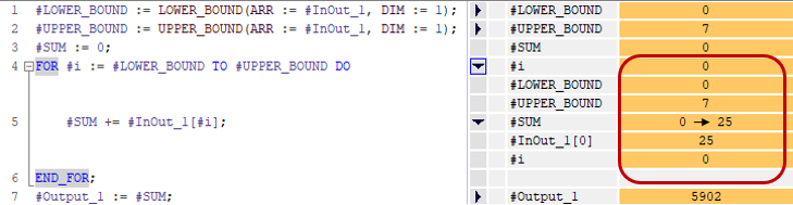 之后,就可以如图4所示的,看到循环内的情况,不过这会造成增加CPU循环时间,并且只能监控到第一个循环。