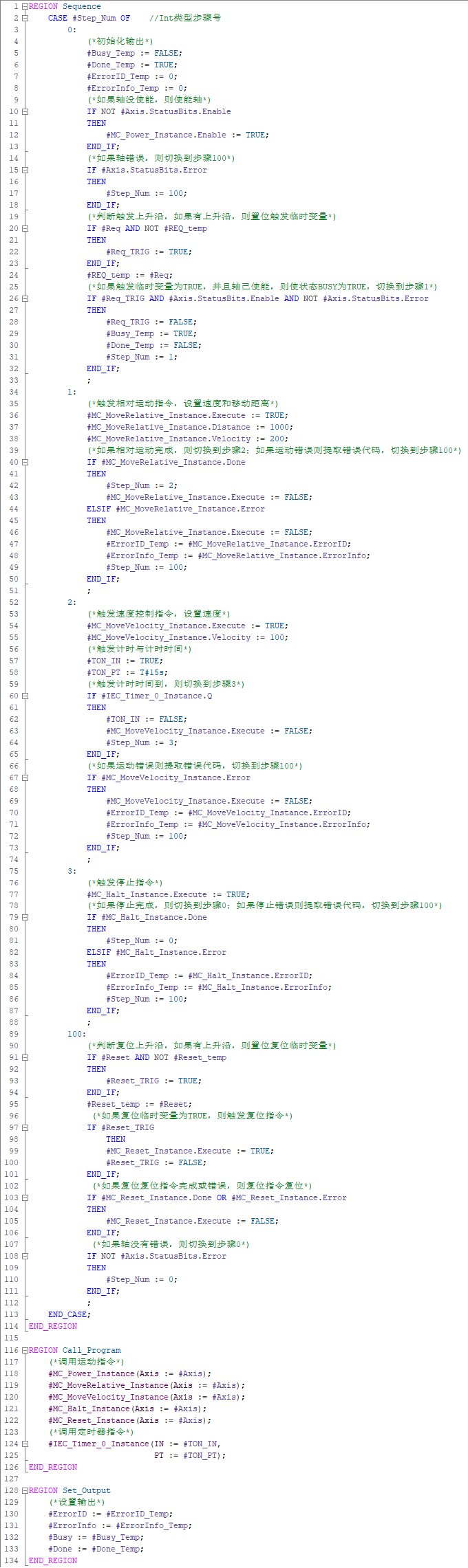 复杂指令一般包含:通信、运动控制、读配方、写数据日志、读写数据记录、定时器等异步指令,这些指令通常不放在CASE语句的逻辑中,而是在最后统一调用。