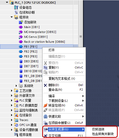 可以将SCL编写的块,或者全局DB以及UDT导出成源文件,可以导出块或UDT,也可以导出所关联嵌套的块或者UDT,如图7所示。