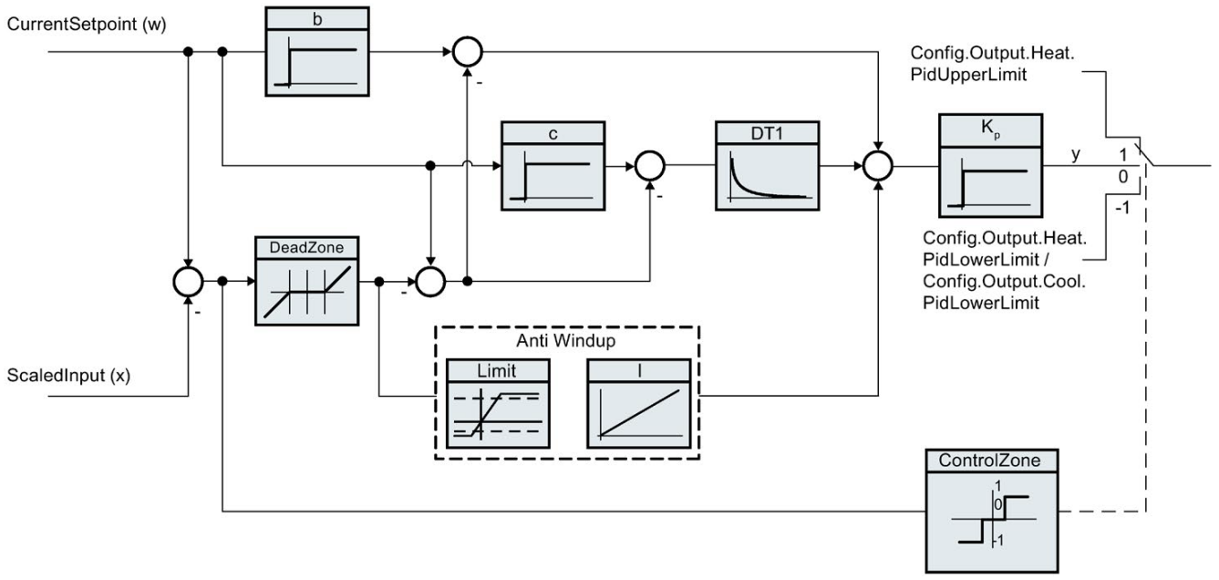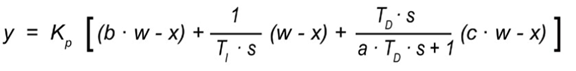 PID 算法根据如图 2 所示公式工作(不激活控制区和死区功能的情况),参数详见表 1 所示。