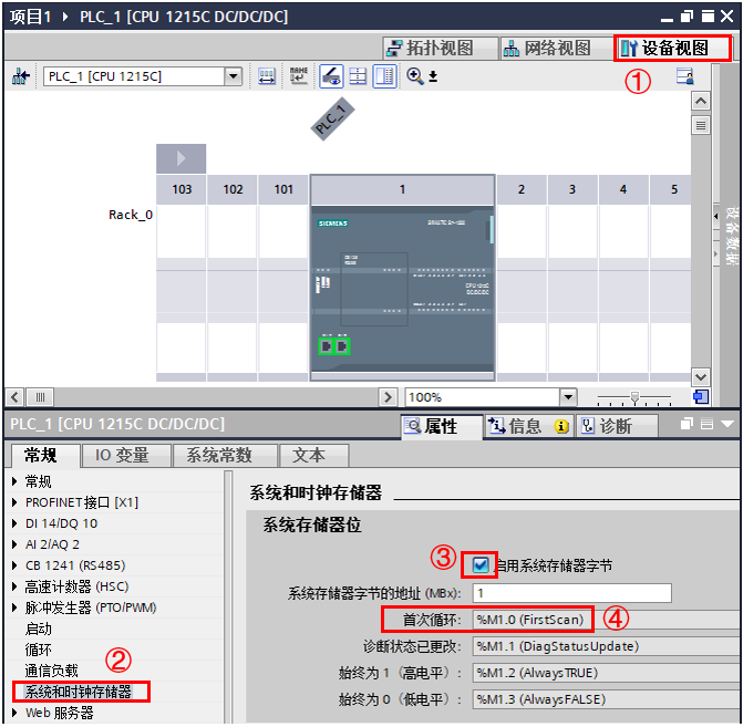 例子中使用系统存储器FirstScan,激活方式如图14所示。