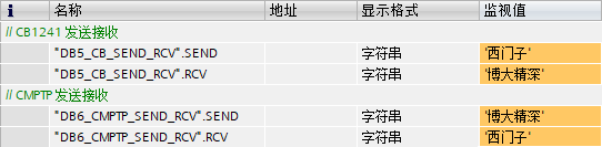 1号站发送字符串'西门子',2号站发送字符串'博大精深'。