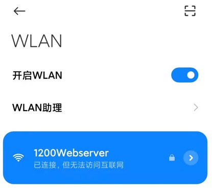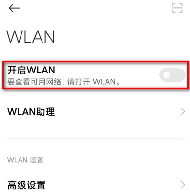 1. 手机设置页面,开启 WLAN,如图 1 所示。