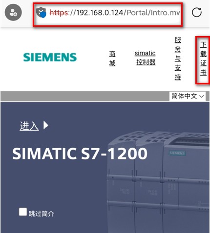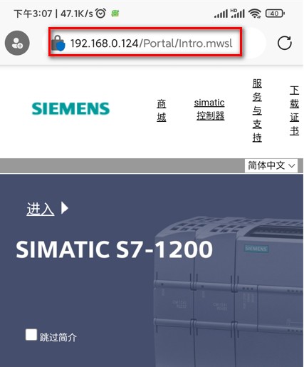 11. 此时,手机 Edge 浏览器中重新访问 https://192.168.0.124,可以看到手机不再提示连接是不安全的,直接进入到 S7-1200Web 服务器简介页面,如图 16 所示。