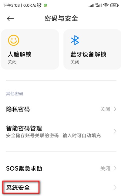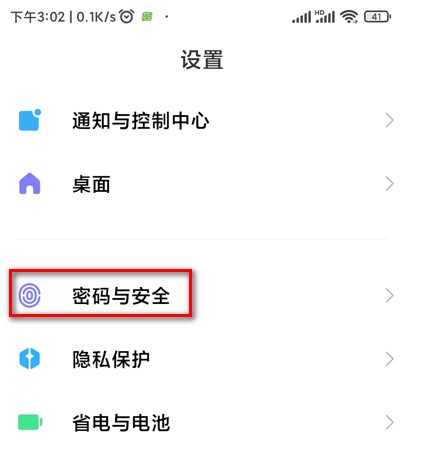 5. 点击手机设置按钮,在设置界面,点击密码与安全,如图 10 所示。