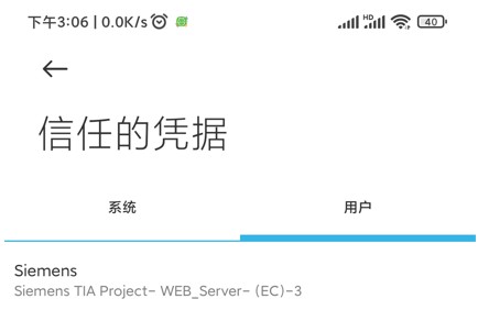 10. 证书中安装成功后,点击信任的凭据,在用户中可以看到已经安装成功的证书,如图 15 所示。