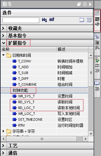 1. 读取S7-1200CPU的系统/本地时钟指令的调用。