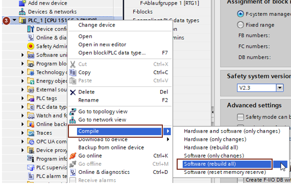1.如果可能,设置最新的Safety system version。 使用此参数指定安全系统版本(包括F系统模块和自动生成的F模块的版本),选择出现的最高版本。