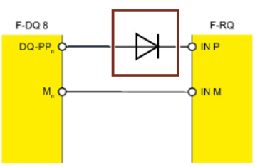 在 F-RQ 模块的24V DC 电源端接入一个二极管 (下图).。这使得F-DQ可以在预先设定的回读时间为1毫秒的情况下运行。