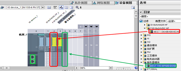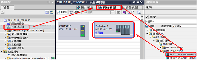 - 进入网络视图,从右侧产品列表中找到IM155-6 PN ST V3.3,如图2-5所示。