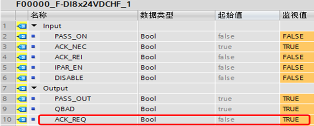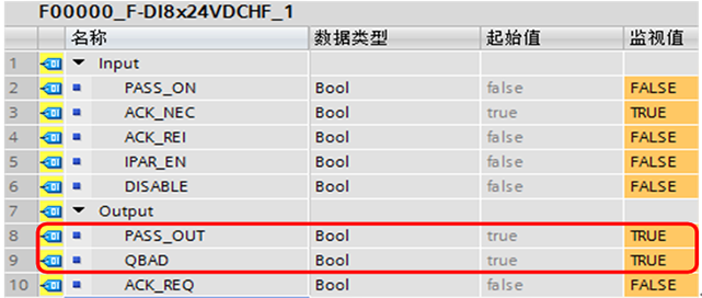 - 在程序中,可以通过访问该安全信号模块的F-I/O DB来读取模块的钝化状态。本例中该F-I/O