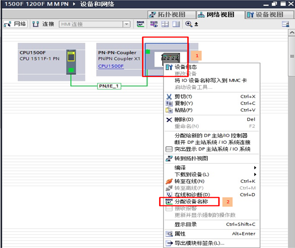 按照上述的方法,组态S7-1215FC的CPU,同时将PN/PN Coupler X2挂成IO设备,分配设备名称,最终的组态结果,如图2-9。