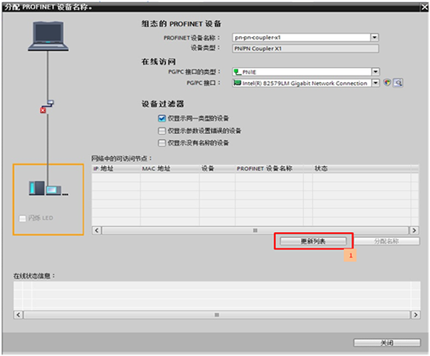 PROFINET IO 网络1使用:PN/PN Coupler x1组态;