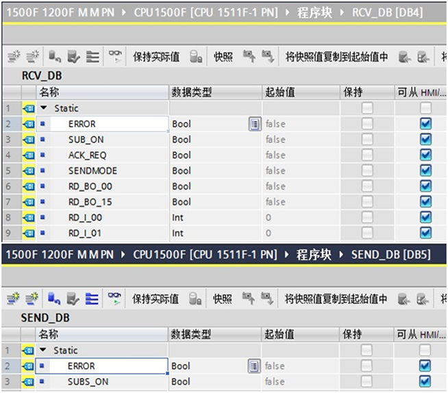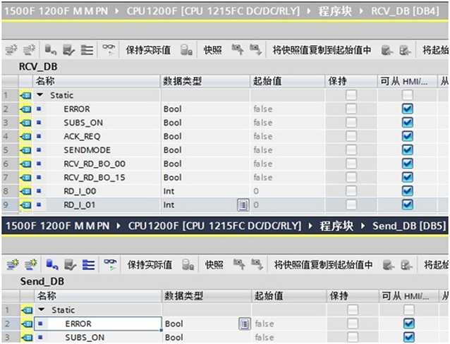 注意:通讯双方的传输条目要匹配,发送对接收,接收对发送。图2-9 双方的IO组态数据