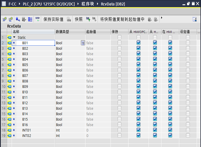 这时CPU1215FC就可以在RCVDP功能指令的输出参数RD_DI_00处接收到DINT数据。注意:不能同时传送INT和DINT类型的数据。