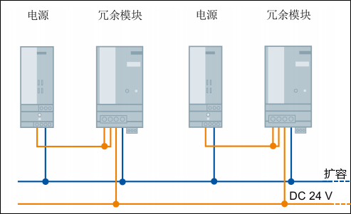 •对两台同型号的24V电源进行解耦操作,用于系统扩容或冗余。