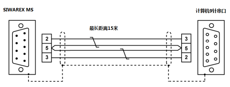 (2)如果通过电脑上集成的RS232串口与称重模块通信不上,需要检查串口本身是否正常,串口电缆的线序是否正确,串口电缆内部接收端和发送端的2、3管脚交叉,5和5直连,如下图所示: