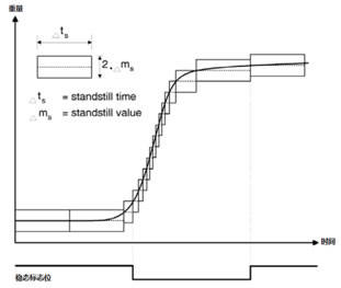 Standstill range和Standstill time (ms):稳态范围与稳态时间。在 ts时间内重量波动不超过两倍的 ms,那么认为当前重量稳定,状态位Standstill置1,同时称重模块的指示灯