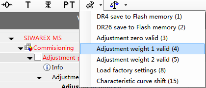 Adjustment weight 1:标定砝码重量,因为SIWAREX MS只能通过一个Word来存储重量,无法显示小数点,所以此处输入砝码重量时需要考虑小数点个数。此处输出2000,如果小数点个数为2,那么代表标定砝码重量为20.00