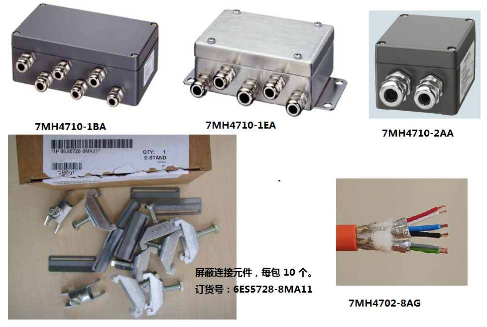 (1) 多个称重模块通过接线盒7MH4710-1EA(不锈钢外壳)或7MH4710-1BA(铝外壳),并联后连接至称重模块;