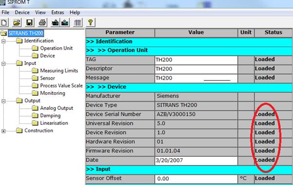 参数上载完毕后,参数状态变为Loaded,如下图所示: