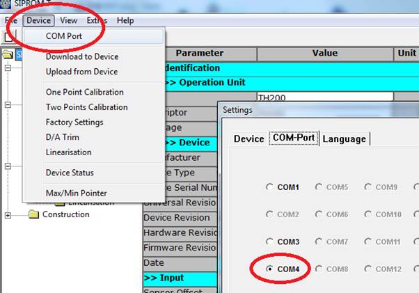 通过Device目录下的COM Port菜单选择USB口,在该实验中使用的是COM4