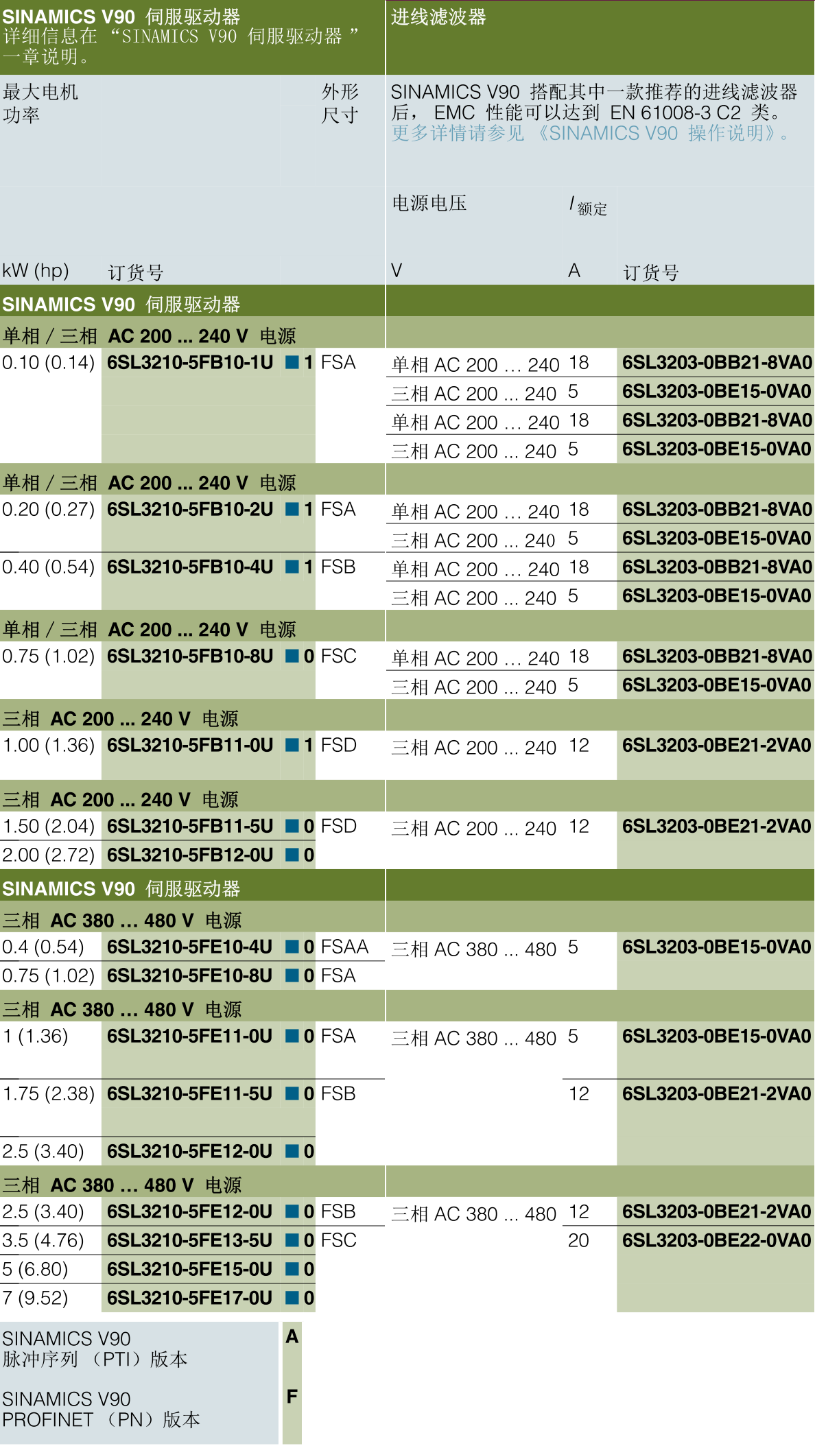 使用进线滤波器以保护伺服系统免受高频噪声干扰。V90 搭配其中一款推荐的进线滤波器后, EMC 性能可以达到 EN 61800-3 C2 类。