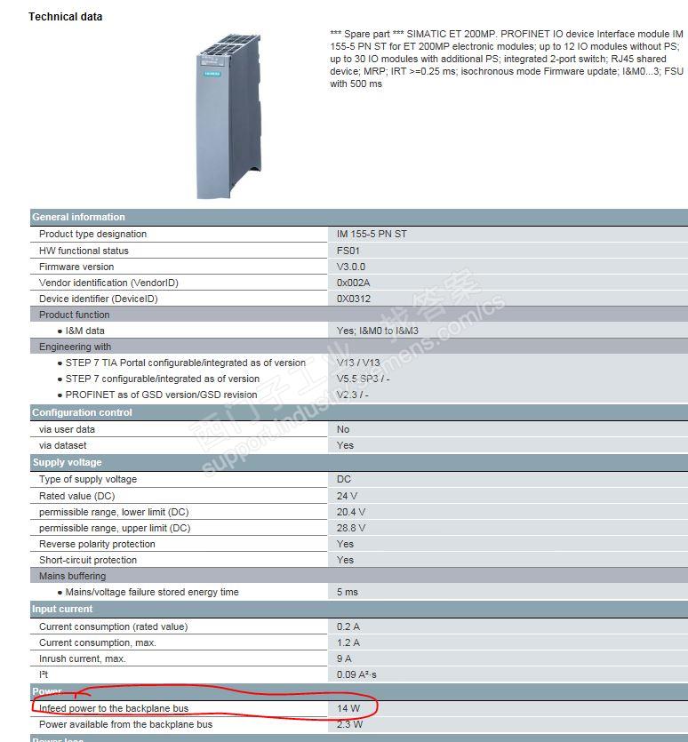 第二个问题:你可以在博途软件,在设备与网络中→设备试图→找到你的et200mp (im155-5模块)→右键属性(可以找到功率损耗,博途软件会自动计算,应该会算出功率损耗的剩余值,如好想不够的回话会为功率损耗为负值,且为红色字体)