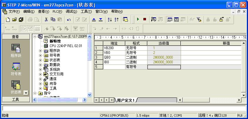 在200CPU侧对V变量赋值如图2.4.23,VB200和VB0