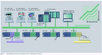 通过以太网通信,S7-200PLC可以实现与另一个S7-200PLC之间的数据交换,与S7-300、S7-400系列扩展模块的数据交换,和上位机、WinAC以及OPC之间的数据交换,当然还有一些人机界面。