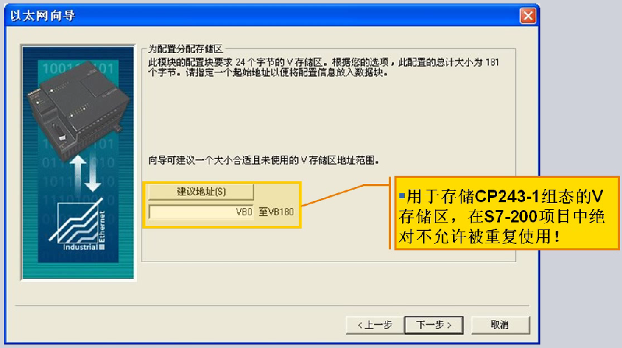 不论我们做的是服务器配置还是客户机配置,以太网都要占用一部分V存储区作为参数的缓存,此部分V存储区在S7-200的程序的其它部分绝对不能够被重复利用,否则就会影响以太网通讯。