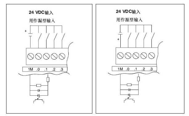 EM221 24VDC输入的模块可以接成漏型或是源型,只要每一组接成一样就行,输入点可以分组接不同的电源,这些电源之间没有联系也可以。
