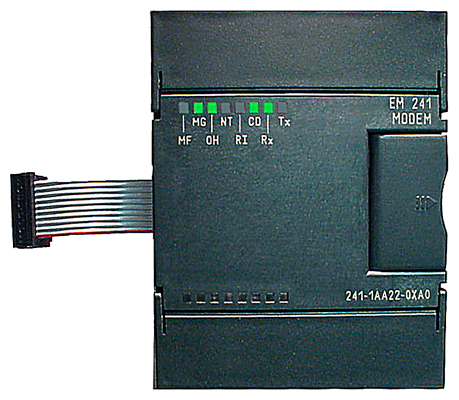 EM241为标准的V34十位调制解调器,与大多数内置或外置的调制解调器兼容,不与十一位调制解调器兼容。EM241模块接线简单,需要供应24V电源,使用自带RG11电话线接口连接电话线,扁平电缆连接S7-200。EM241适用于各个国家的使用,所以设置国家代码后,上电时EM241把自己的通信标准按照所设置的国家代码初始化,例如将国家代码设置为06,即可适用于中国的电话网,因为中国的电话标准为GB3482,国家代码设置后必须重新给CPU上电新的设置才起作用,此模块只能应用于模拟电话网。