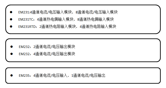 - EM223:数字量输入/输出模块,4输入/4输出,8输入/8输出,16输入/16输出,32输入/32输出