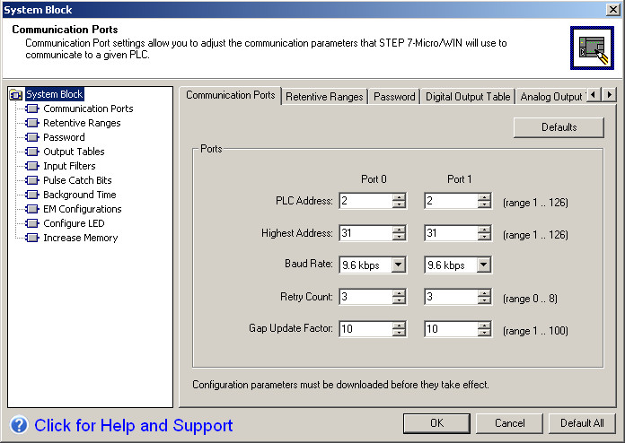 通信端口:对CPU的通信端口进行设置