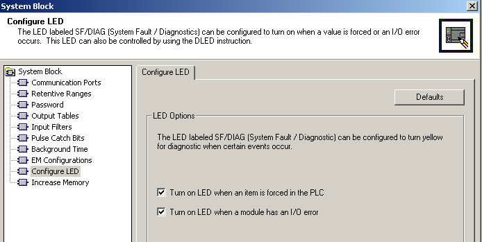 系统故障和诊断的LED灯是共用的,它可以设置为数据被强制或者出现I/O错误时发出黄色的光,用于区别之前系统故障的红光。具体操作时,如果将"当PLC中有项目被强制时,点亮LED"或者将"当一个模块有I/O错误时,点亮LED"勾上,当PLC有强制功能或者模块有I/O错误的时候,灯会亮黄色的光。