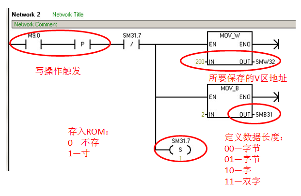 - 用户编程使用相应的特殊寄存器(SMB31,SMW32)功能,将数据写入EEPROM永久保存;