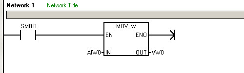 第一条语句是采集模拟量的输入信号,将信号放到VW0中;