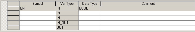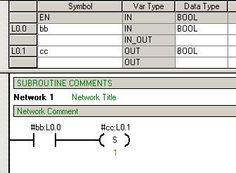上图是子程序的局部变量表,在变量表中需要定义符号名,选择变量类型、数据类型,从而建立起局部变量表。