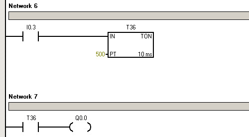 第六条语句是定时器的操作,在I0.3导通的时候做一个5s的定时,使网络7中的Q0.0导通。以上便是所有程序指令执行的过程。