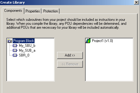 点击以后可以在组件中选择程序块,选择My_SUB_b子程序为指令库的一个组件;