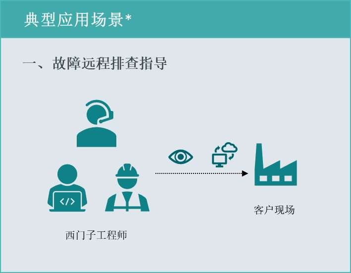 西门子为您提供全新的服务模式—西门子数字化远程服务,其借助专门的软件平台和本地定制的专属远程连接套件,实现西门子专家实时在线视频语音指导、远程设备访问,帮助您第一时间快速进行故障排查分析等工作。