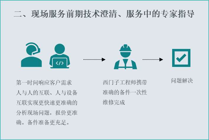 - 属于客户可自行更换的备件,可以通过远程服务来指导客户更换。属于需要西门子专业技术人员上门维修或者返厂维修范畴的,需要申请现场服务或者返厂维修。具体可以打400 810 4288 -2咨询。